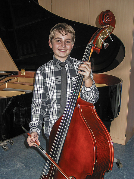 Die Viola oder Bratsche wird wie die Geige gespielt, ist etwas größer und klingt etwas tiefer. Im Sitzen spielt man das noch tiefer klingende Violoncello, das umgangssprachlich Cello genannt wird. Und zum Musizieren auf dem Kontrabass, dem tiefsten der Streichinstrumente, muss man stehen oder sitzt auf einer Art Barhocker.
