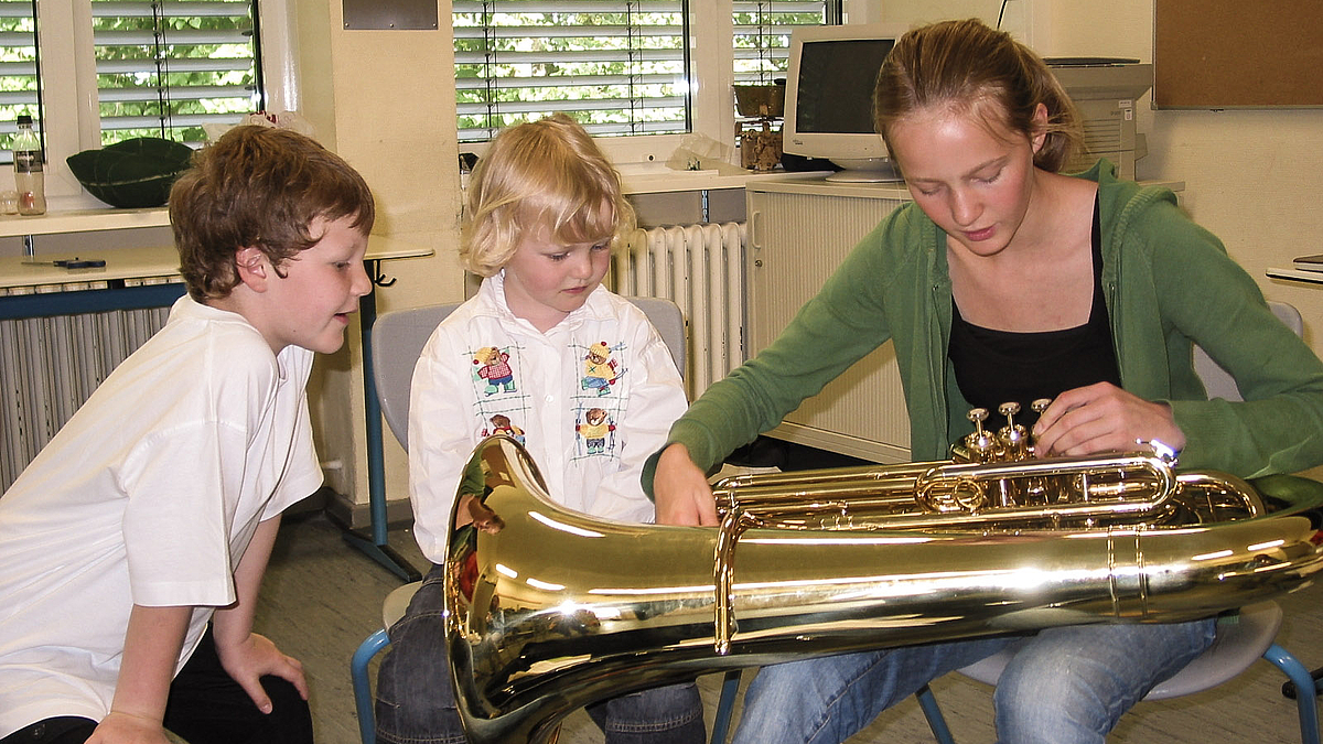 Bei Blechblasinstrumenten werden die Töne durch ein Kessel- oder Trichtermundstück erzeugt. Zu den Blechblasinstrumenten gehören Trompete, Posaune, Horn, Bariton, Tuba und Euphonium. Beginnen kann man die Trompete bereits mit 8 Jahren, für die anderen Instrumente sollte man mindestens 10 Jahre alt sein. Nach oben gibt es keinerlei Altersgrenze.