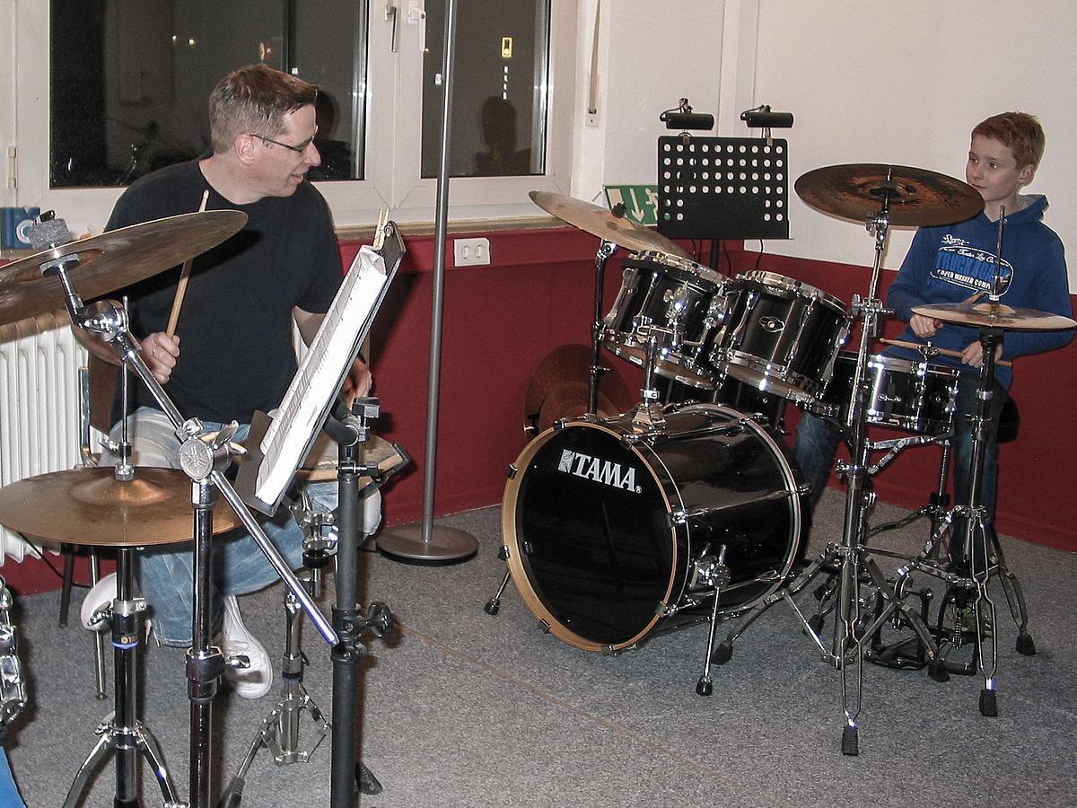 Mitzubringen sind vor allem der Wunsch, sich mit dem Instrument auseinander zu setzen. Rhythmusgefühl ist zwar von Vorteil, kann aber auch geschult werden. Eine gute Beweglichkeit von Armen und Beinen sowie eine ausreichende Größe, um an Trommeln und Pedale gleichzeitig zu reichen sind von Vorteil. Angeboten wird je nach Stand des Schülers eine solide Ausbildung, die auch Noten lesen beinhaltet. Rock, Pop und Metal sind hauptsächlich Thema bei Hobby-Schlagzeugern. Bei ambitionierten Schülern findet eine Ausrichtung nach Interessenlage statt bis zur Vorbereitung aufs Studium. Stile wie Jazz, Latin, Big-Band, Chart-Reading und andere werden dann Thema.