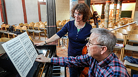 War im letzten Künstlerkonzert Anfang September seine erste Cellosonate zu hören, so haben Maike Kunstreich, Cellolehrerin an der Musikschule Butzbach, und der Pianist Wolfgang Hess für das Lehrerkonzert nun die dritte der insgesamt fünf Werke für diese Besetzung vorbereitet. Beethoven vollendete diese dreisätzige Sonate in A-Dur 1808 und widmete sie Freiherr Ignaz von Gleichenstein, einem damaligen Hobby-Cellisten. Während Beethovens erste zwei Cellosonaten noch den Titel „für Klavier und Cello“ tragen, so zeigt sich im Autograph dieser Sonate ein Wandel im Verlauf des Werkes, der zu einem ausgewogenen Verhältnis zwischen beiden Instrumenten führt.